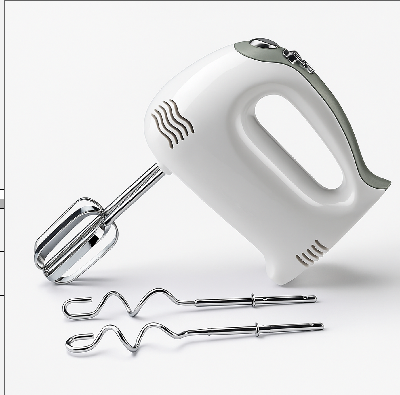 Comes with 2 stainless steel egg beaters and 2 dough hooks