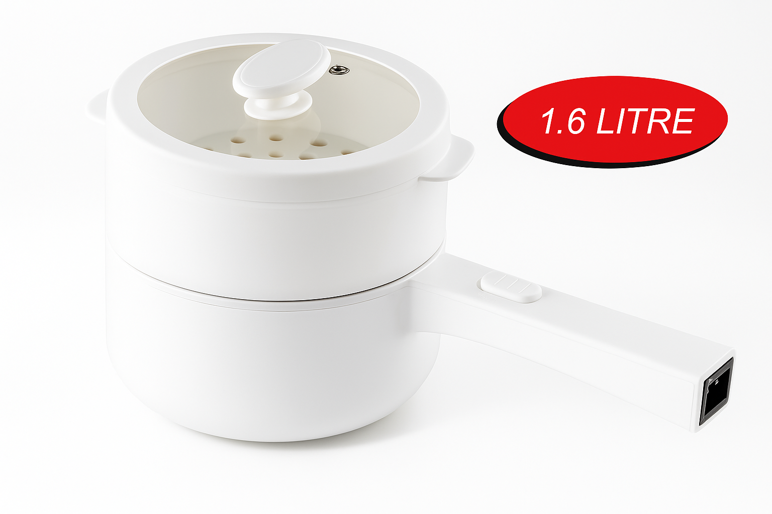 Hot Pot Electric with Steamer, Non-Stick Fryer Pan, 1.5L Rapid Noodles Electric Pot for Steak, Soup with Power Adjustment